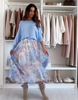 🍹Sommerschlussverkauf 50% Rabatt☀️Blauer Anzug: Bluse mit Schleife am Rücken und Tüllrock