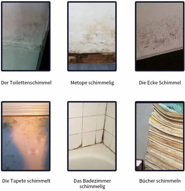 Keine Sorge, Mehltau-Entferner Spray ist die ideale Lösung für alle Arten von Mehltau. Es zersetzt Mehltau schnell, dringt tief in die Wand ein, um das Problem des Mehltaus an der Wurzel zu lösen, verhindert das Wiederauftreten von Schimmel und wirkt antibakteriell.