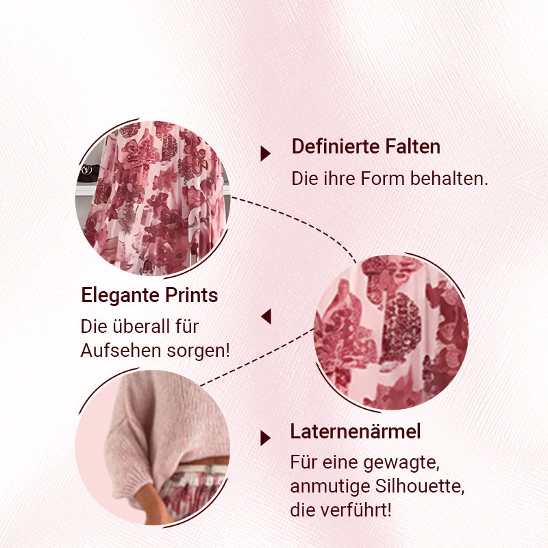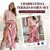 Damen zweiteiliges Set: Oberteil mit Rundhalsausschnitt und bedrucktem Rock mit Gürtel
