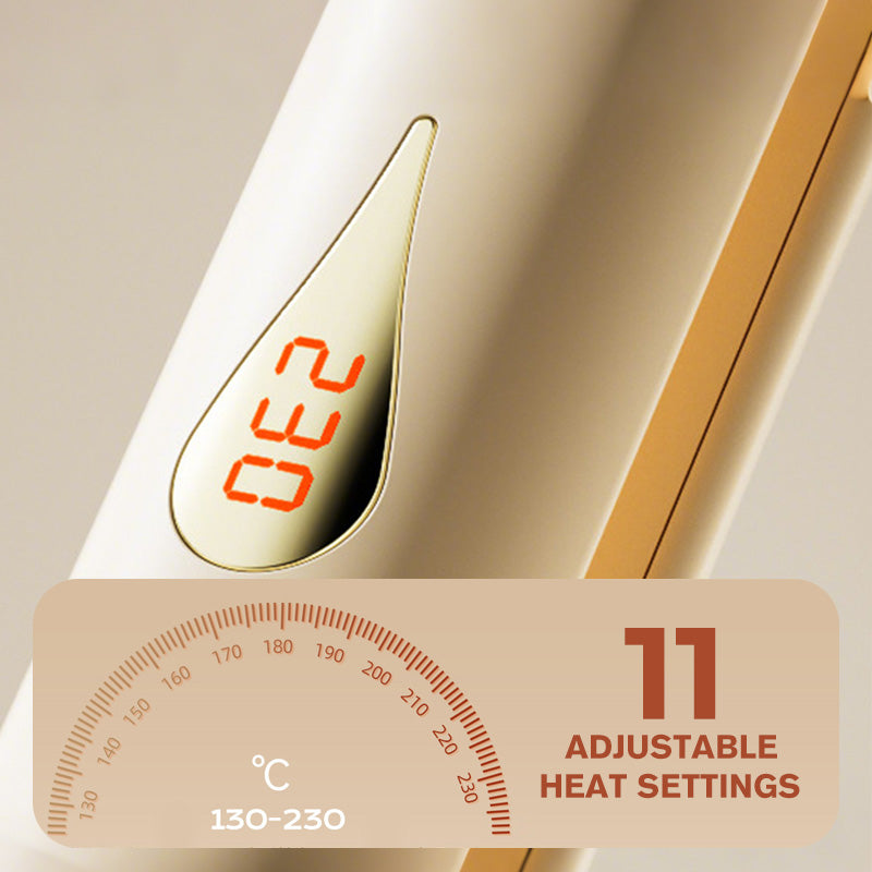 11 einstellbare Hitzeinstellungen mit LCD-Temperaturanzeige: Passen Sie die Hitzeinstellungen mit der klaren LCD-Anzeige an und bieten präzise Kontrolle für feines, dickes oder welliges Haar, um jedes Mal glatte, schadensfreie Locken zu gewährleisten.