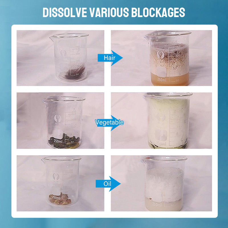 * Leistungsstarke Funktion: Es kann Rohrverstopfungen wie Haare, Papier, Seifenreste, Gemüse, Obst, Essensreste, Fett und organische Stoffe schnell beseitigen.
