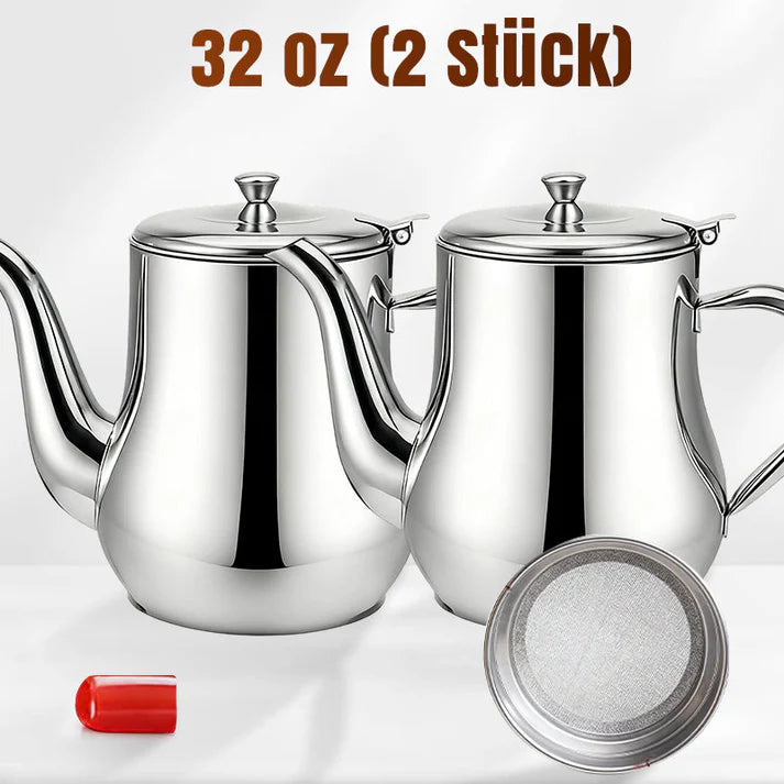 Der Ölsiebtopf ist zweckmäßig, Sie können ihn zur Aufbewahrung von Öl und Filter verwenden. Das Adlerschnabeldesign verhindert das Auslaufen von Öl und macht das Ausgießen von Öl reibungsloser.