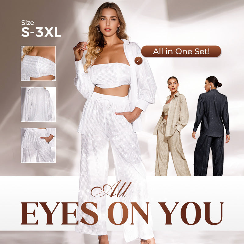 💕2025 HEISSER VERKAUF💐Paillettenblazer und weite Hose für Damen (3-teiliges Set)