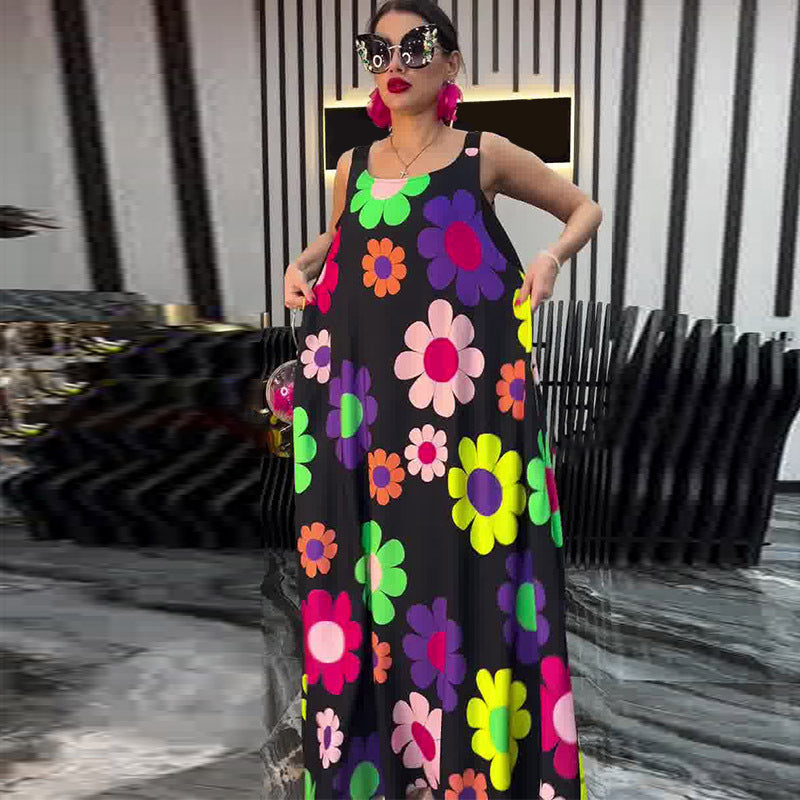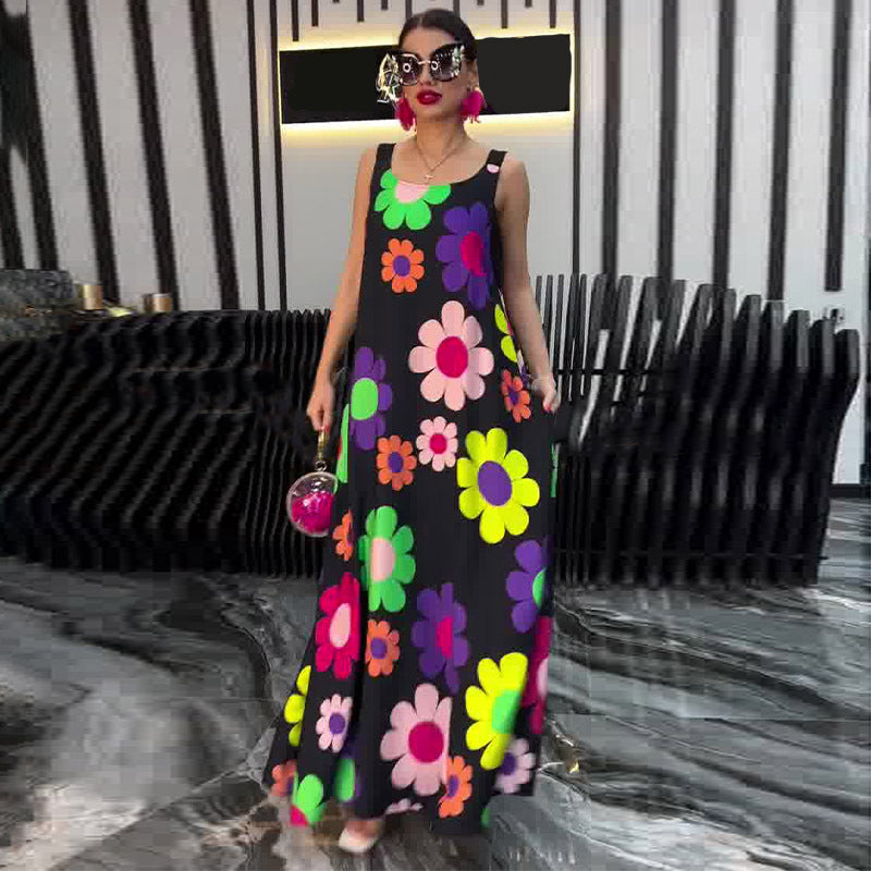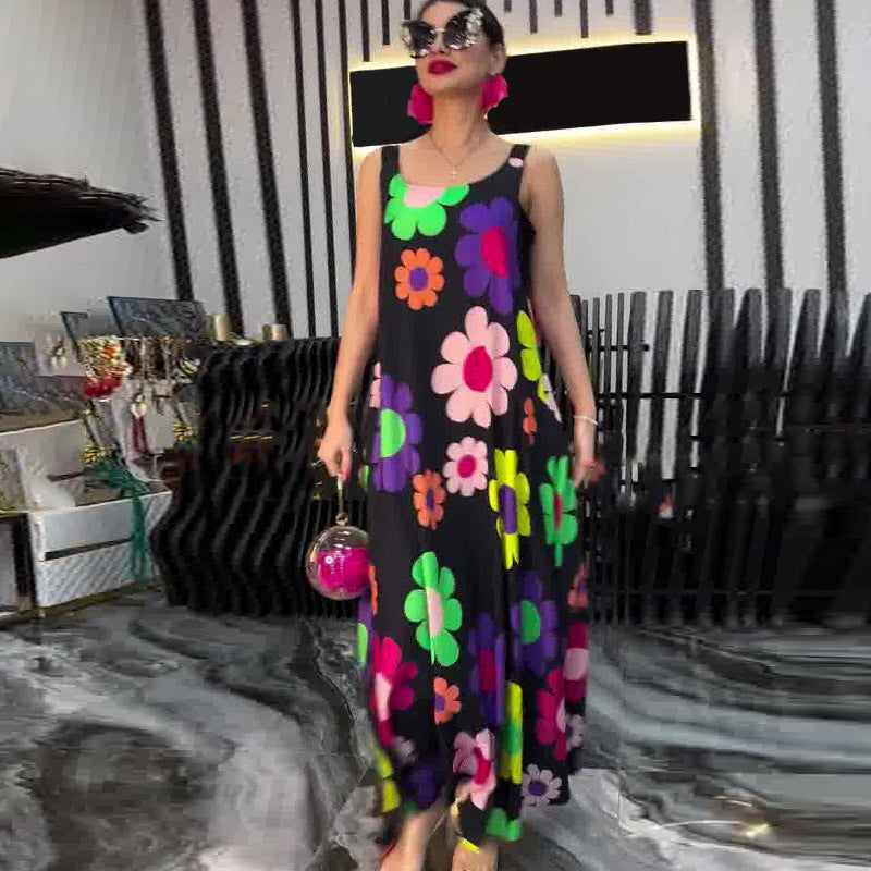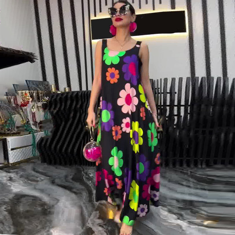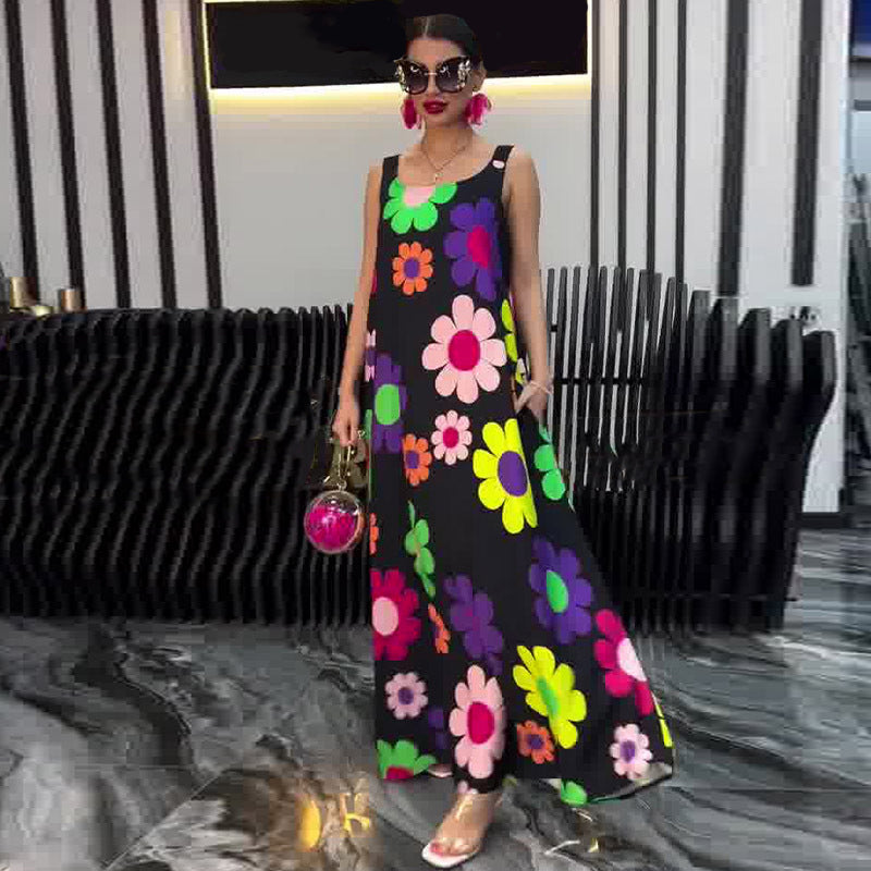Floral Printed Loose Sleeveless Ankle-Length Dress