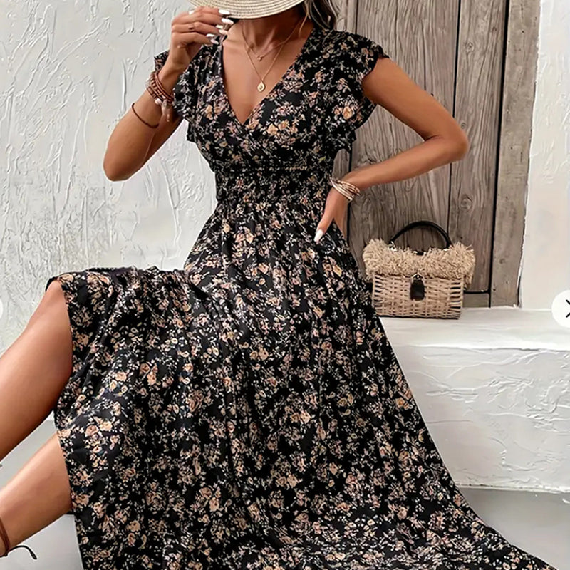 💃Fließendes Maxikleid mit V-Ausschnitt und Blumenmuster