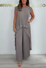 🌸 Set aus plissiertem, kurzärmligem, unregelmäßigem Midi-Top und Hose mit weitem Bein und elastischer Taille