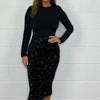 Lieferumfang: 1 * Damen Slim-Fit Midikleid mit langen Ärmeln und Pailletten