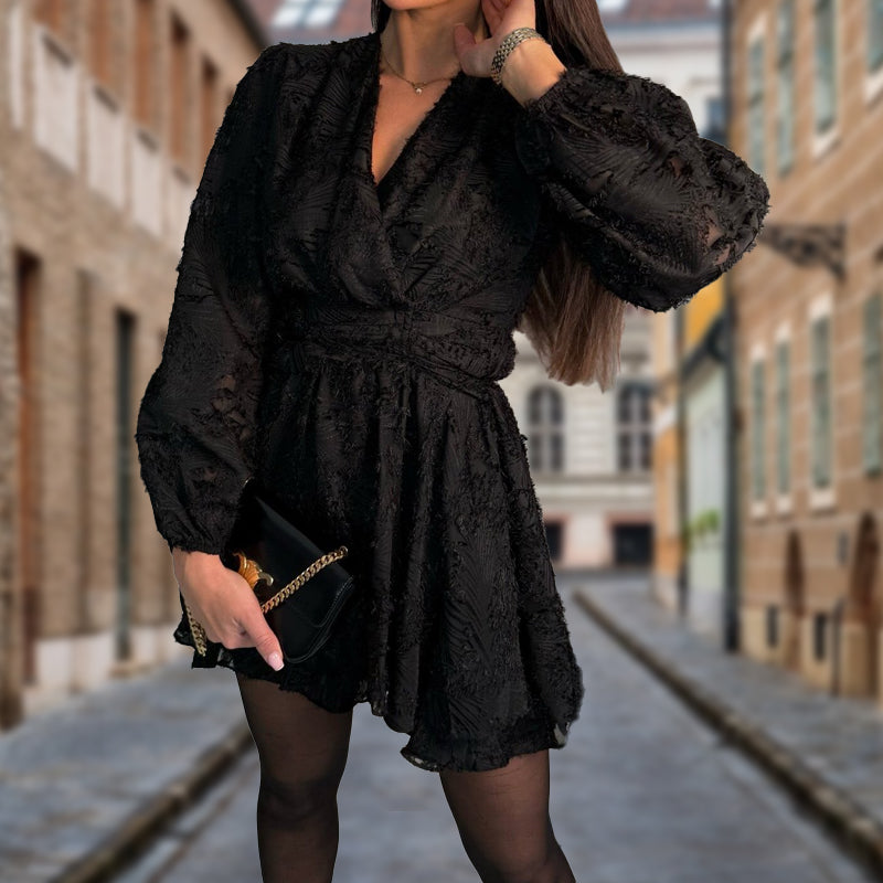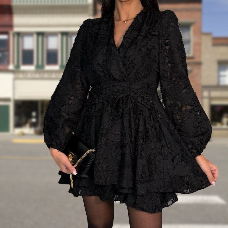SCHMEICHELHAFTER A-LINIEN-SCHNITT: Dieses doppellagige Minikleid in A-Linie bietet eine figurbetonte Silhouette, die Ihre Form stilvoll hervorhebt – perfekt für besondere Anlässe oder Events.