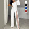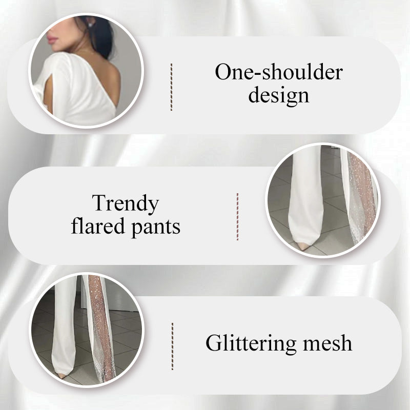 ✨Heißer Verkauf 50% Rabatt✨👠Damen One Shoulder Glitter Mesh Flared Jumpsuit🖤