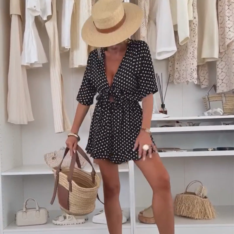 TIMELESS POLKA DOT ELEGANCE – Vintage glamour with these playful yet sophisticated one-piece pants. The flowing silhouette mimics a short skirt for feminine movement, while the retro dot pattern adds whimsical charm to your summer wardrobe.