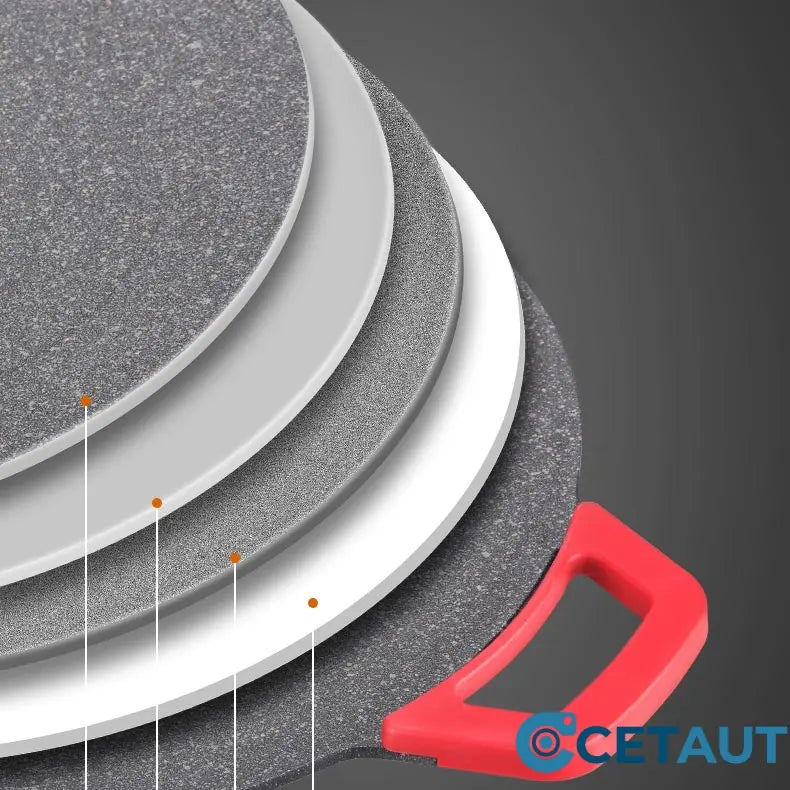 ANTIHAFT-OBERFLÄCHE: Die fortschrittliche Antihaftbeschichtung aus medizinischem Stein gewährleistet müheloses Lösen der Lebensmittel und einfache Reinigung. Kein Kratzen oder Scheuern mehr!