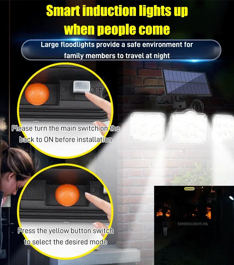 Solar-Wandleuchte mit drei Köpfen für draußen