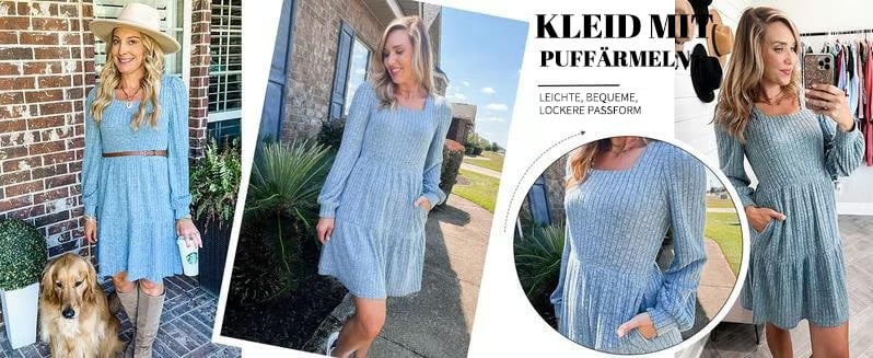 🔥Langärmelige Herbstkleider mit quadratischem Ausschnitt für Frauen