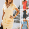 IRREGULAR BUTTON FRONT: Featuring an intentional irregular button design where the top button is artfully decorative, while the remaining buttons below are fully functional. This creates a deep, adjustable V-neck illusion that elongates your neckline and adds a daring yet sophisticated focal point to the dress.