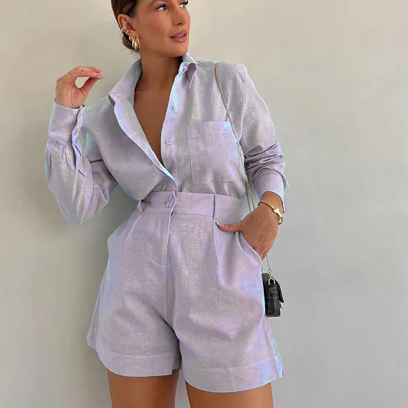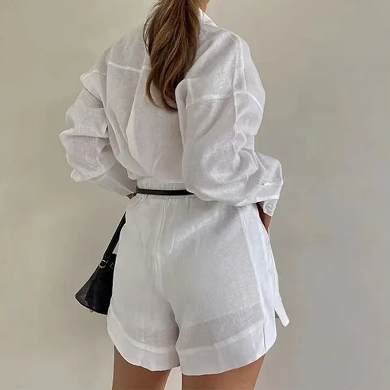 ELEGANTER DAMEN-ZWEITEILER – Bestehend aus einem Langarmshirt und passenden Shorts für einen harmonischen, stilvollen Look, der sich mühelos vom Tagesoutfit zum eleganten Abend-Look wandeln lässt.