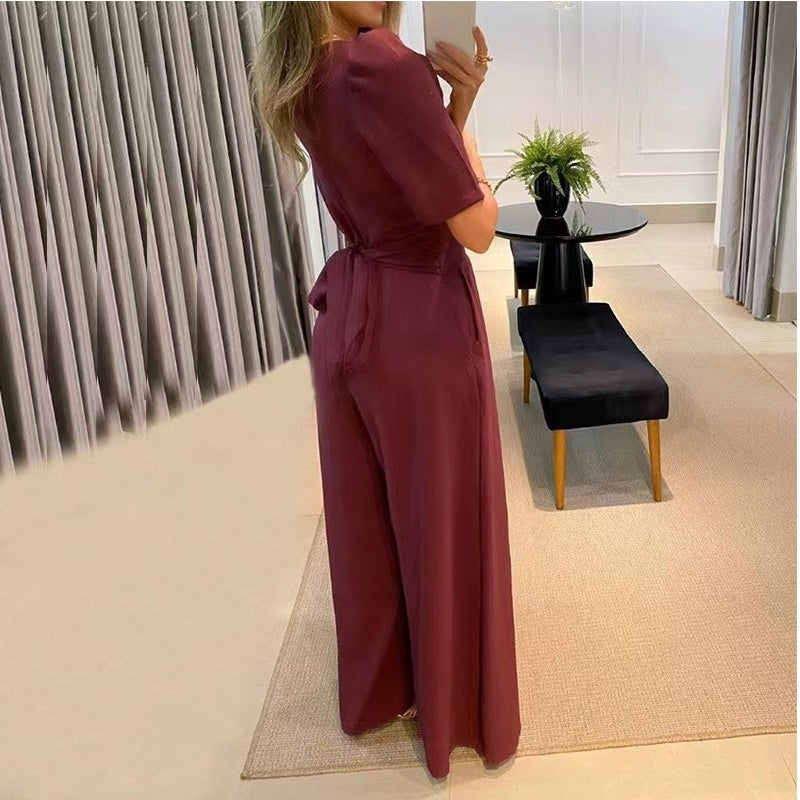 💥Heißer Verkauf 58% Rabatt💕Hochtaillierter Jumpsuit mit weitem Bein in Uni-Farbe für Damen