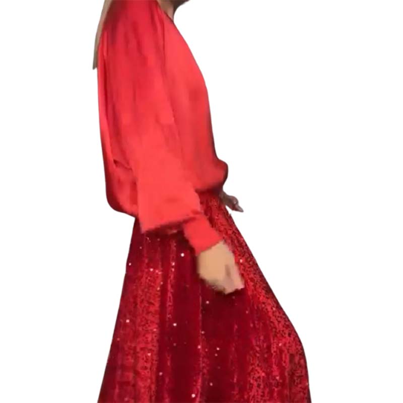 Lieferumfang:1*Damen Langarm Top & Pailletten Maxirock Zweiteiliges Set